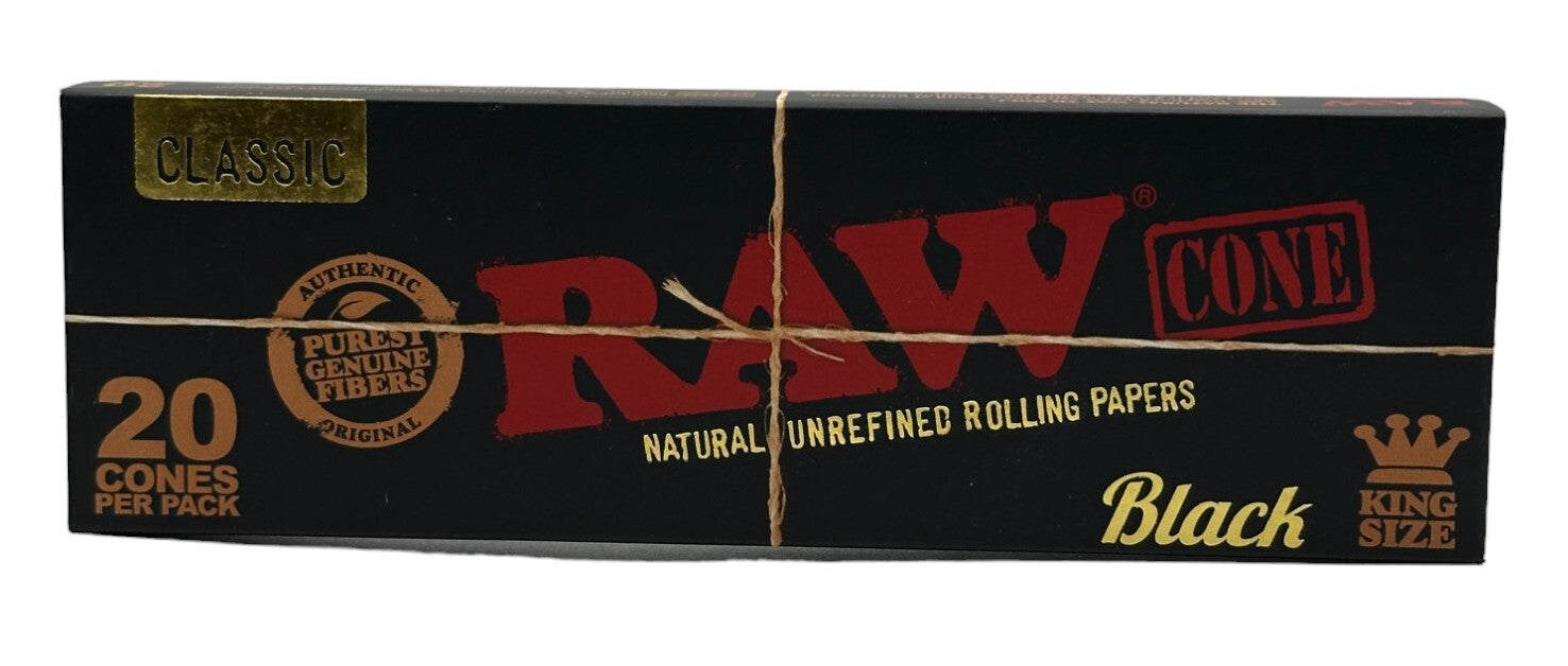 Delve into the realm of convenience and purity with the 10 X RAW Black Ultra Fine Natural Unrefined King Size Cones Pre Rolled Paper 20 Pack Cone set. Crafted by RAW, renowned for its commitment to quality and tradition, this collection offers smokers an unparalleled smoking experience in every puff. Made from natural, unrefined materials and expertly pre-rolled, these cones provide an authentic and hassle-free smoking session.