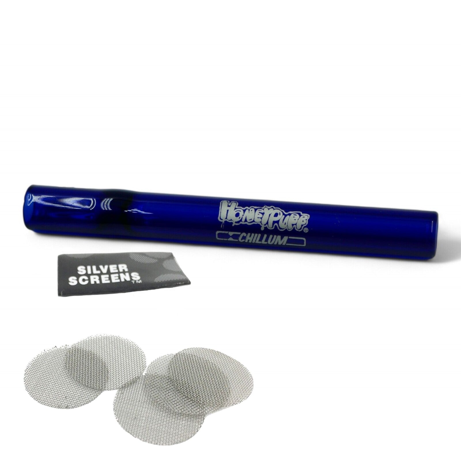 The HoneyPuff Chillum Borosilicate Glass One Hitter is a sleek and compact smoking accessory, perfect for discreet use on the go. Measuring 11cm (4.3") in length, this pipe is crafted from high-quality borosilicate glass, known for its durability and resistance to thermal shock. Despite its robust construction, the pipe remains lightweight and easy to handle.