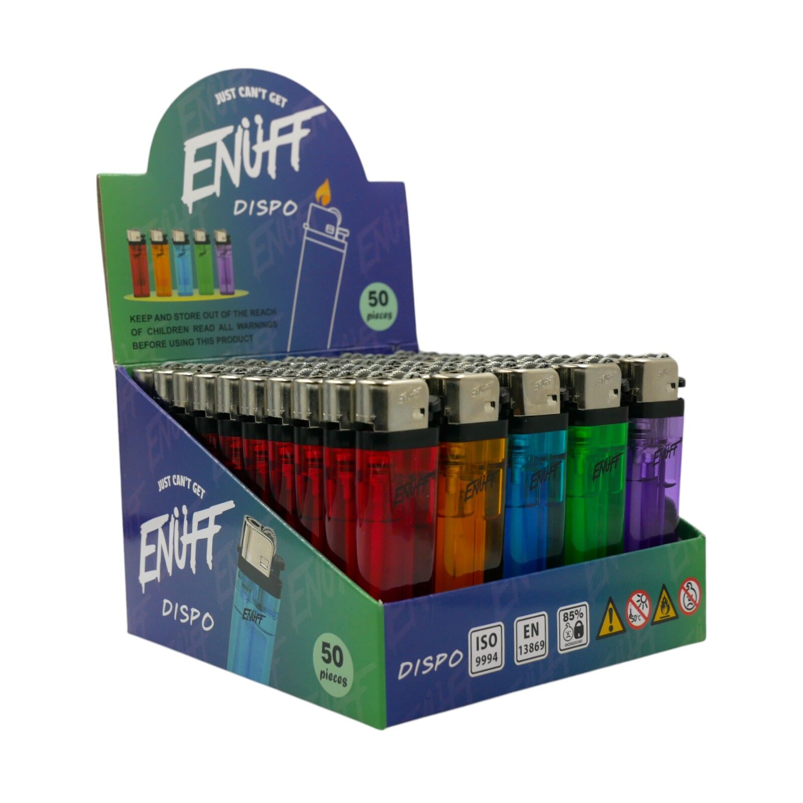 Elevate your lighting experience with our exclusive 50 Enuff Lighters. This premium collection combines convenience, safety, and style, ensuring you're always prepared to light up. Each electronic gas lighter features a simple yet sleek design in a variety of vibrant colours, making it an ideal companion for all your lighting needs. Crafted with a focus on quality and reliability, this assortment is the perfect blend of functionality and practicality.