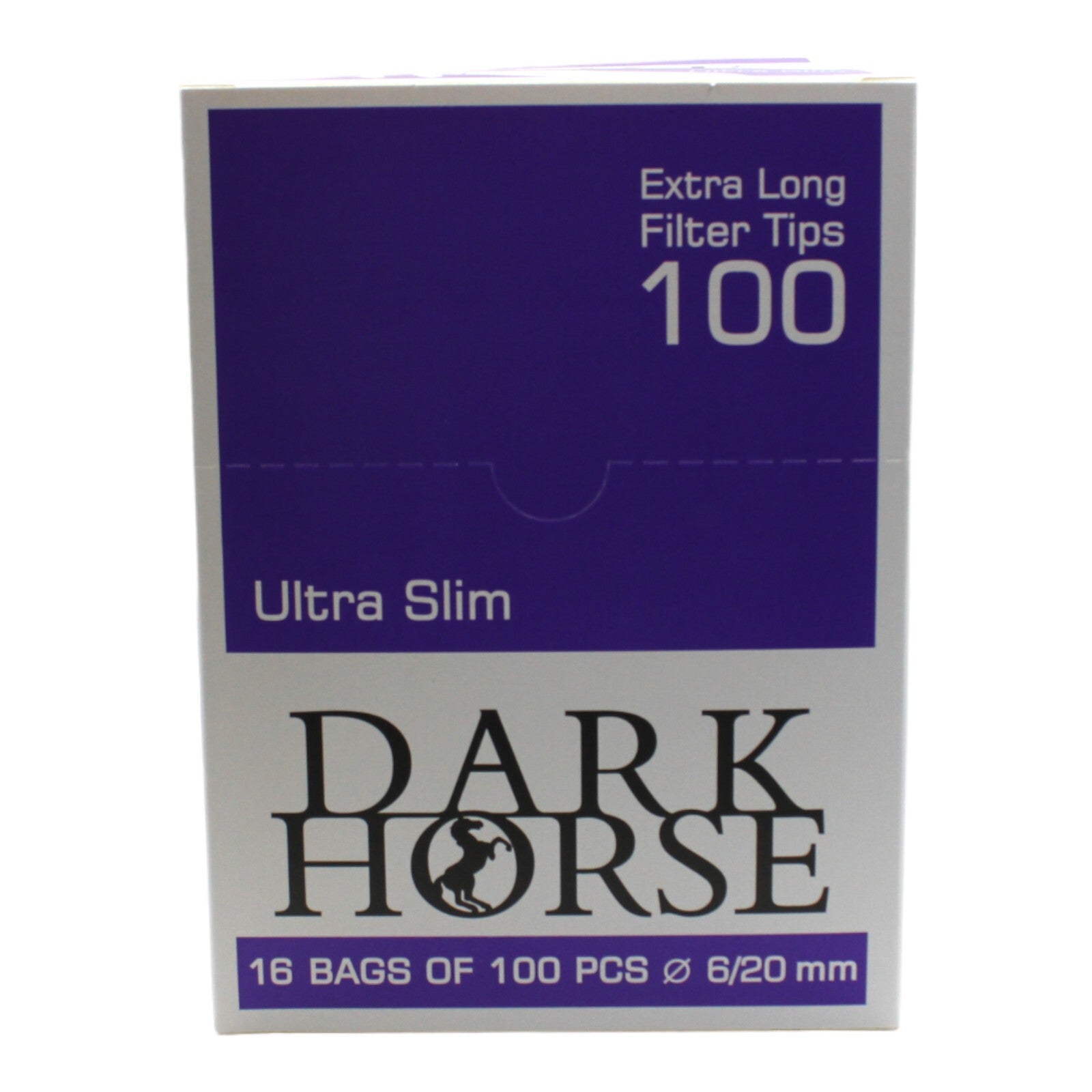Dark Horse Ultra Slim Extra Long Purple 100 Filter Tip Bag x 16 Pack Box - 1,600 Tips