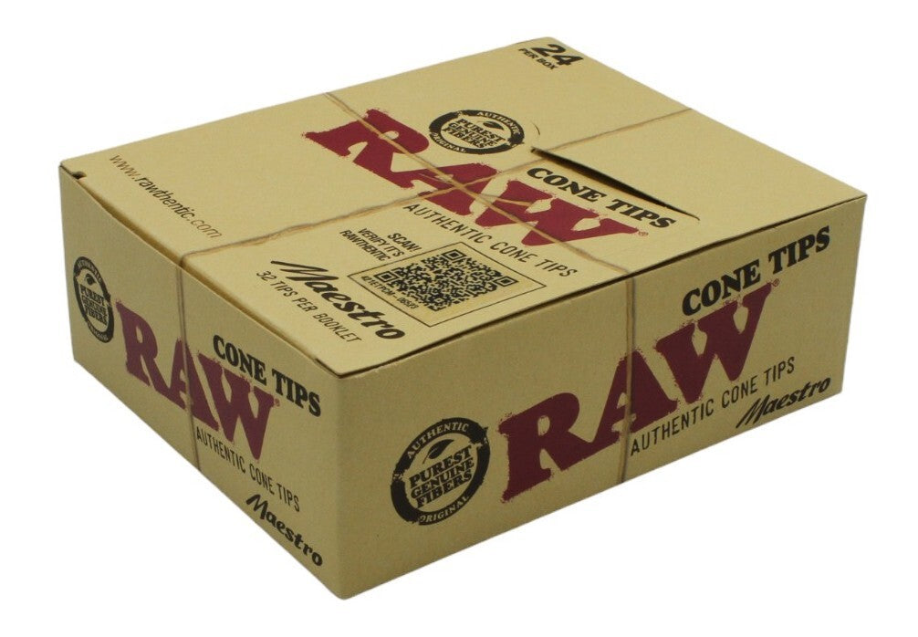 Box of 24 RAW Cone Tips Natural Paper Filter Smoking Tobacco Maestro