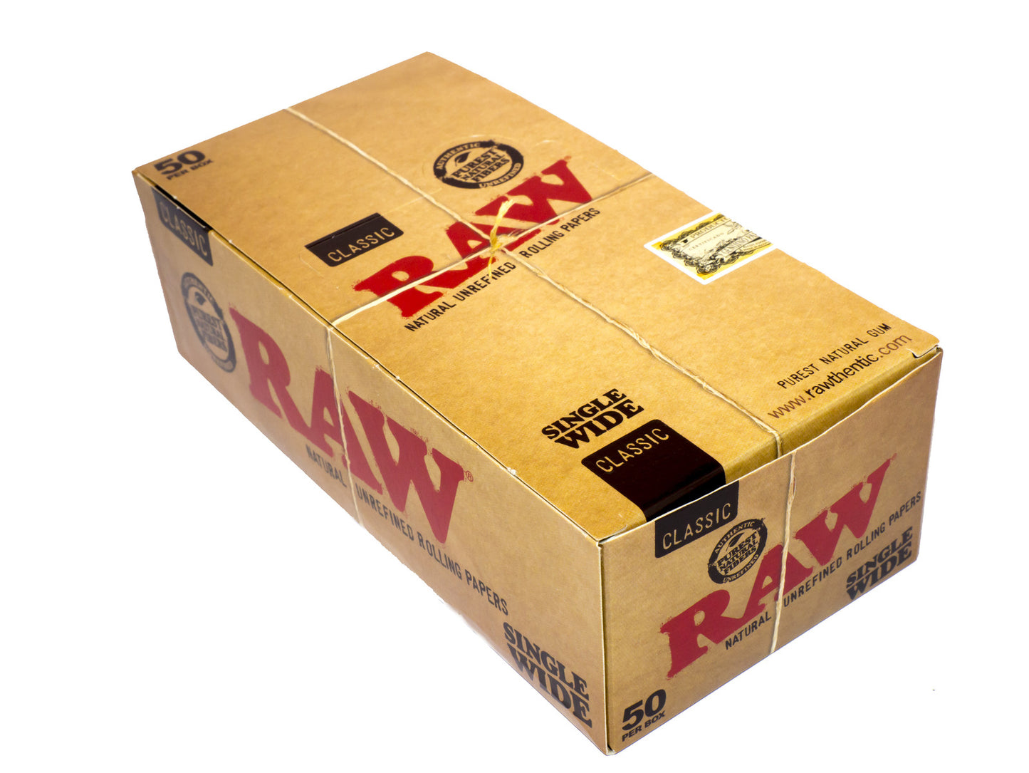 Box of 50 RAW Single Wide CLASSIC Natural Paper Smoking Tobacco Leaf