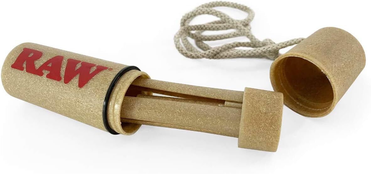 - Natural Construction: Made from plant plastic and paired with a hemp corded necklace, this stash jar embodies RAW's commitment to sustainability and natural craftsmanship.