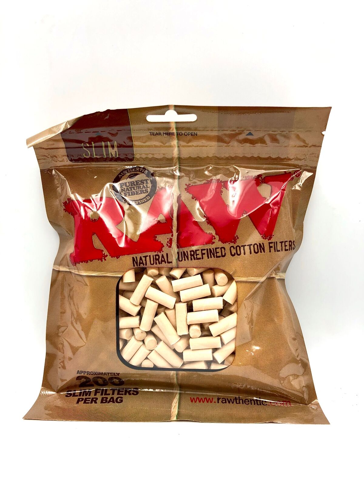 RAW Slim Unbleached Cotton Filters 6mm - 200 Tip Re-Sealable Bag Smoking Filters