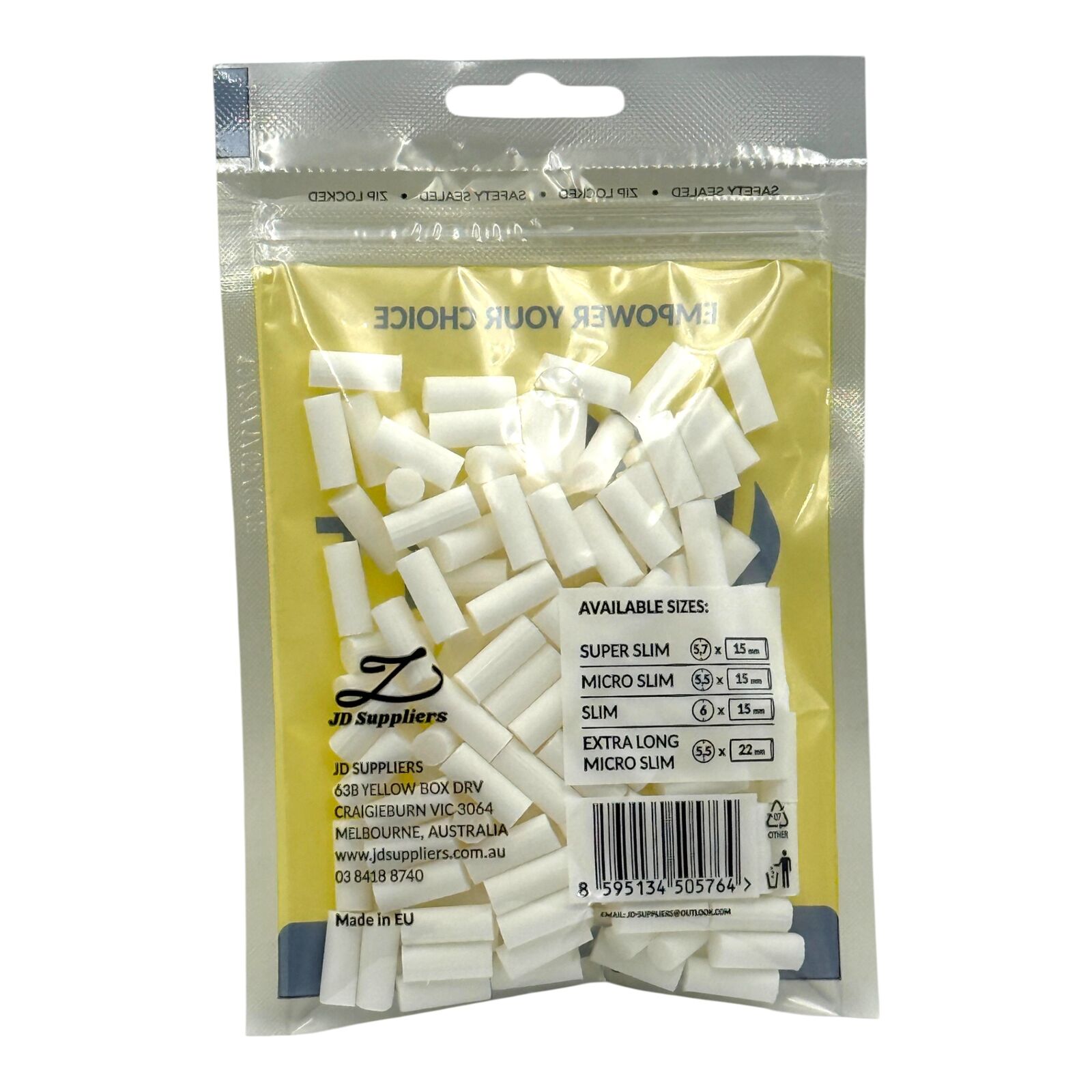 White filter tips. Plain white filter tips supplied in yellow VNT branded packaging.