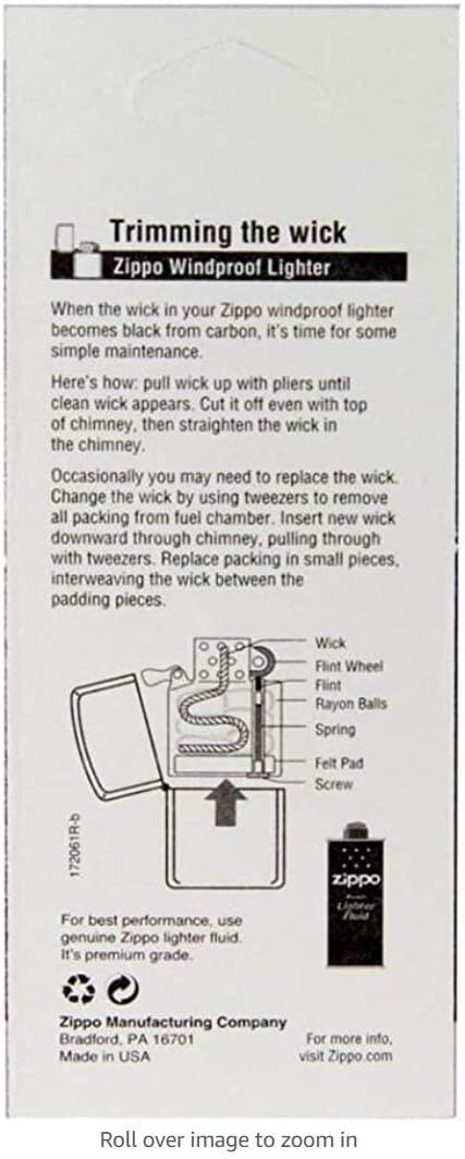 By following these simple maintenance and replacement steps, your Zippo lighter will continue to provide a reliable source of fire in any conditions. The genuine original Zippo wick is designed specifically for Zippo windproof lighters, guaranteeing the perfect fit and function. Keep your Zippo lighter in peak condition with genuine Zippo replacement wicks, ensuring it remains a dependable tool for years to come.